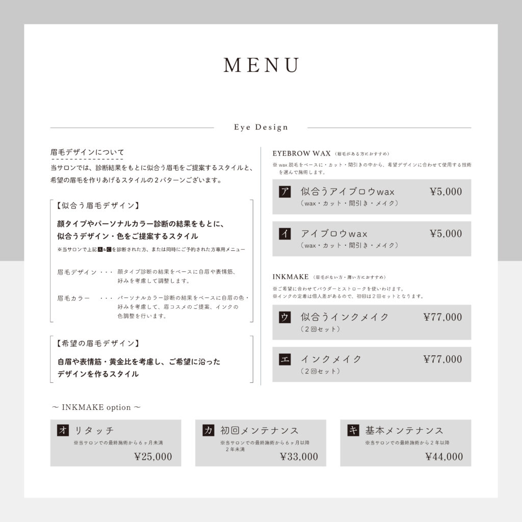 自眉や表情筋・黄金比も考慮しデザインを作ります。